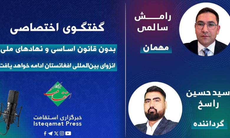 رامش سالمی، پژوهشگر و آگاه مسایل سیاسی افغانستانی مقیم امریکا، در گفت‌وگوی اختصاصی با خبرگزاری استقامت تاکید کرد که ساختار کنونی حکومت‌داری طالبان با قواعد و معیارهای بین‌المللی همخوانی ندارد و در غیاب نهادهای ملی مانند پارلمان و قانون اساسی، مشروعیت سیاسی لازم را برای به رسمیت شناخته شدن از سوی جامعه جهانی کسب نخواهد کرد.