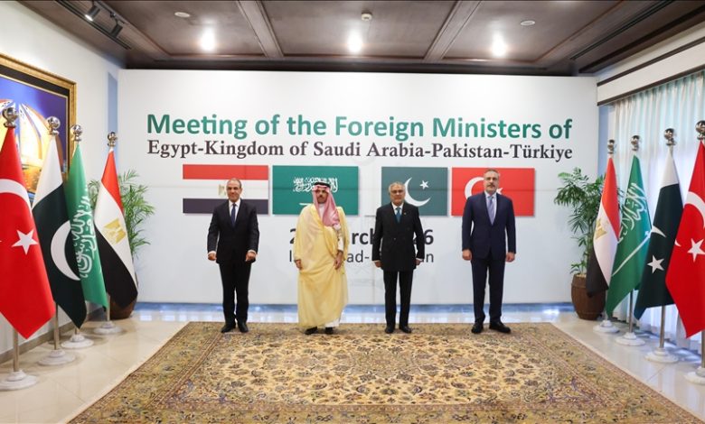 وزرای امور خارجه ترکیه، مصر، پاکستان و عربستان سعودی در نشستی ویژه در اسلامآباد، پایتخت پاکستان، گرد هم آمدند.