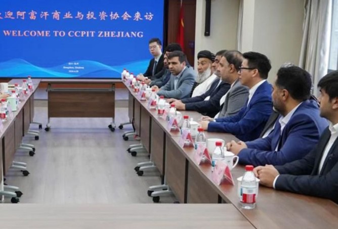 رئیس اتاق تجارت و سرمایه‌گذاری افغانستان به همراه هیئت همراهش با رئیس اتاق تجارت و سرمایه‌گذاری هانگژو، یکی از مراکز مهم اقتصادی چین، دیدار و گفت‌وگو کرد.